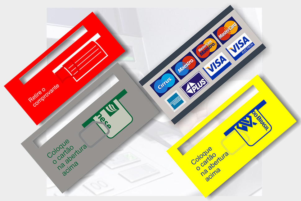 Painéis para caixas eletrônicos (ATM), máscaras e labels para terminais (PINPAD, POS), fornecemos frontais, painéis e outras etiquetas autoadesivas para aplicação em equipamentos de automação comercial e industrial.